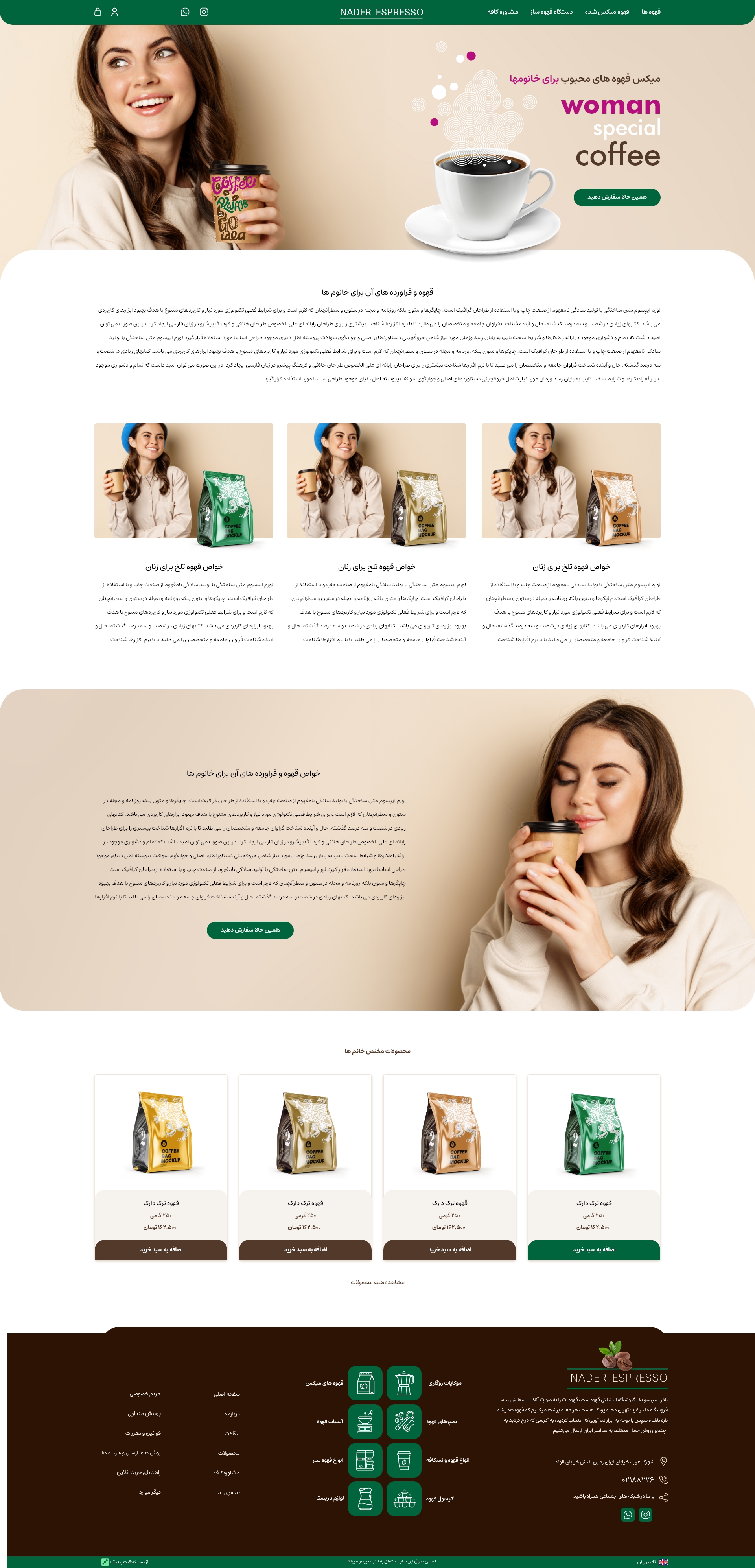 وب سایت نادر اسپرسو، نمونه ای حرفه ای از طراحی سایت مینیمال بشمار میرود که در آن به ui/ux توجه ویژه ای شده است. سایت نادر اسپرسو که توسط تیم پیام آوا طراحی و اجرا شده است نمونه ای از طراحی وب سایت شخصی بشمار میرود.